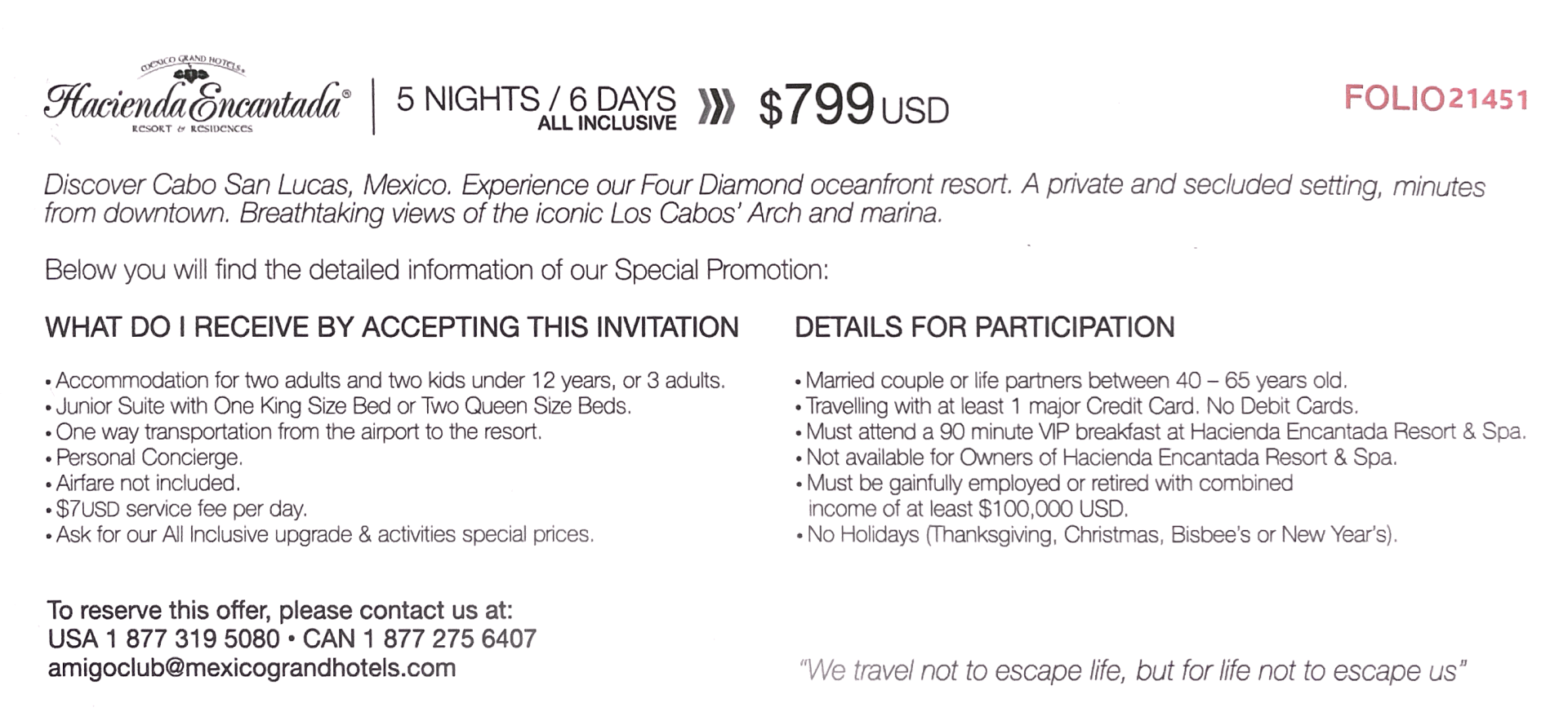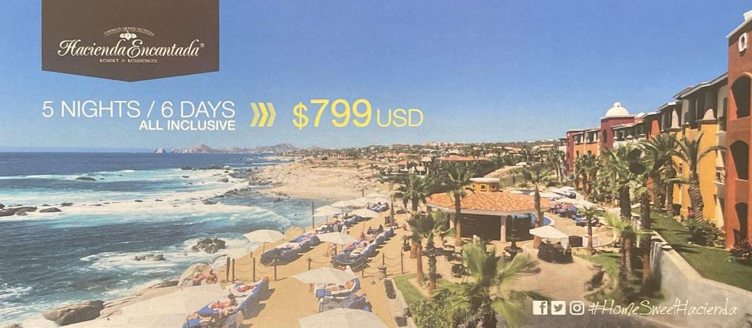 Contact your GW Travel Agent or to e-mail GW Travel and we can provide details on booking this great ALL INCLUSIVE CABO VACATION for you! Guests must attend a 90 minute VIP breakfast at resort, but it is a no pressure presentation guaranteed. Worth it for 6 days ALL INCLUSIVE at this amazing resort.