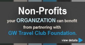 GW Travel will contribute a portion (up to 30%) of every commission received to GW Travel Club Foundation to support our qualified charity partners. By booking travel through the Travel Club the charities supporters will receive concierge level customer service and a donation will be made in their name to their supporting charity.