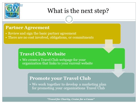 We create a dedicated Travel Club for your charity with a dedicated travel agent. Every trip your members or friends book, we make a donation for that trip! Just like Expedia, but you and your charity benefit.
